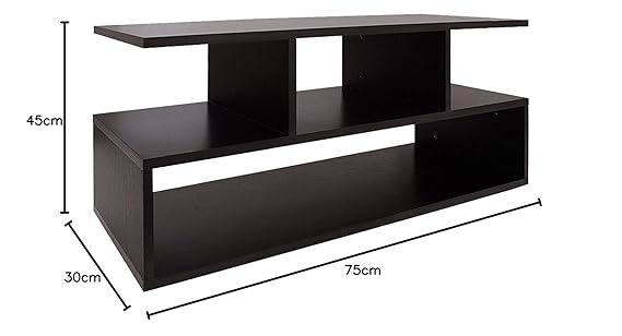 This stylish, low-profile TV unit features a chic, tiered design in a bold dark finish, creating a modern focal point for your entertainment space. The layered structure provides versatile storage options, including a wide base shelf for larger media items and two upper open cubbies for set-top boxes or décor. With a compact 75cm length, this contemporary stand is perfectly sized for bedrooms, apartments, or smaller living areas.