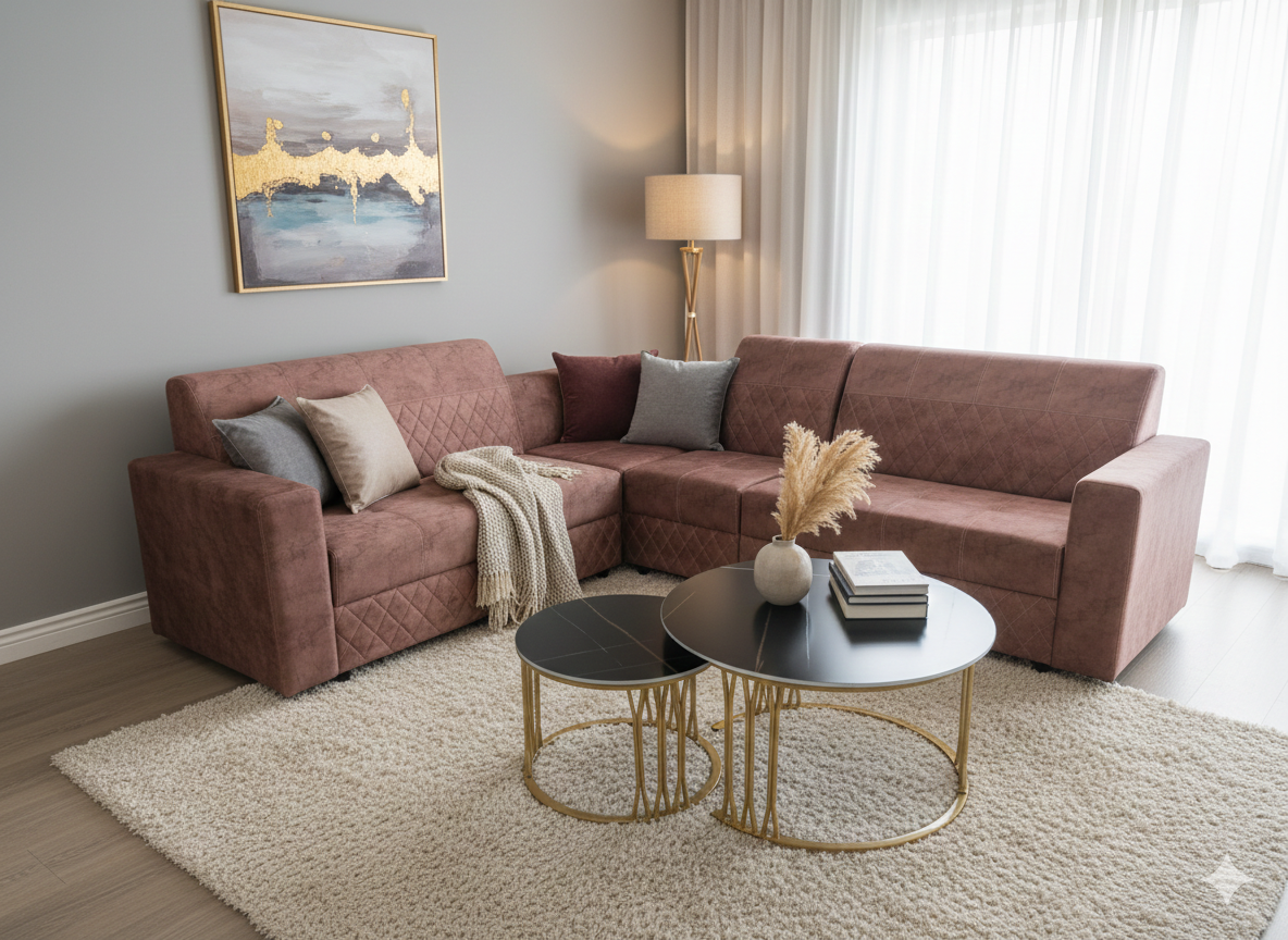 The Corner Sofa Diamond Cut combines contemporary design with functional comfort, making it an ideal centerpiece for modern living spaces. Its distinctive diamond-cut upholstery pattern adds visual depth and sophistication, while the corner configuration maximizes seating capacity without compromising on style. Crafted with attention to detail, this sofa offers a perfect balance of aesthetic appeal and practical comfort for families and entertainment enthusiasts alike.