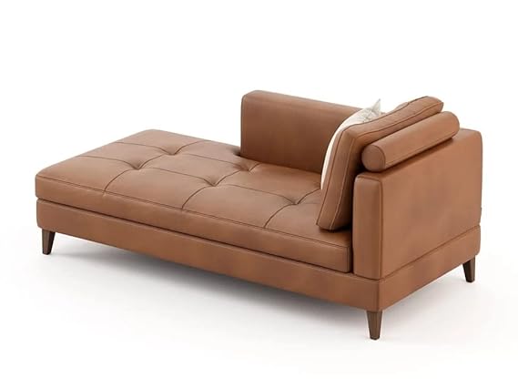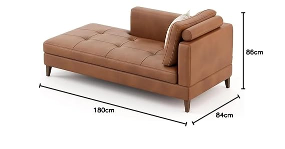 Indulge in luxurious relaxation with this sophisticated tufted leather chaise lounge, featuring a warm caramel finish and a sleek, contemporary silhouette. Perfect for the living room or bedroom, the generous 180cm length provides an ideal space for stretching out, complemented by the angled backrest and bolster cushion for superior comfort. Elevated on elegant tapered legs, this Diwan introduces a timeless, upscale look and unparalleled comfort to your home.