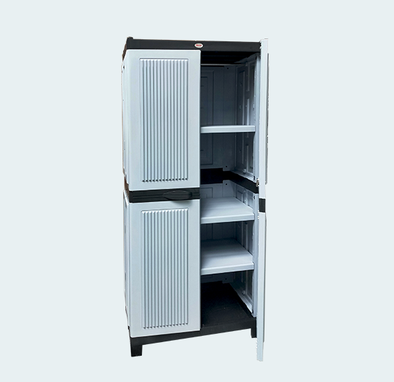 The Harmony plastic wardrobe features a full-size design with ribbed liner textured panels that add a modern touch to its durable build. Crafted from waterproof and termite-free materials, this wardrobe is built to last and requires minimal maintenance. Its robust structure offers excellent strength and provides ample storage space, making it a versatile and reliable storage solution for any home.