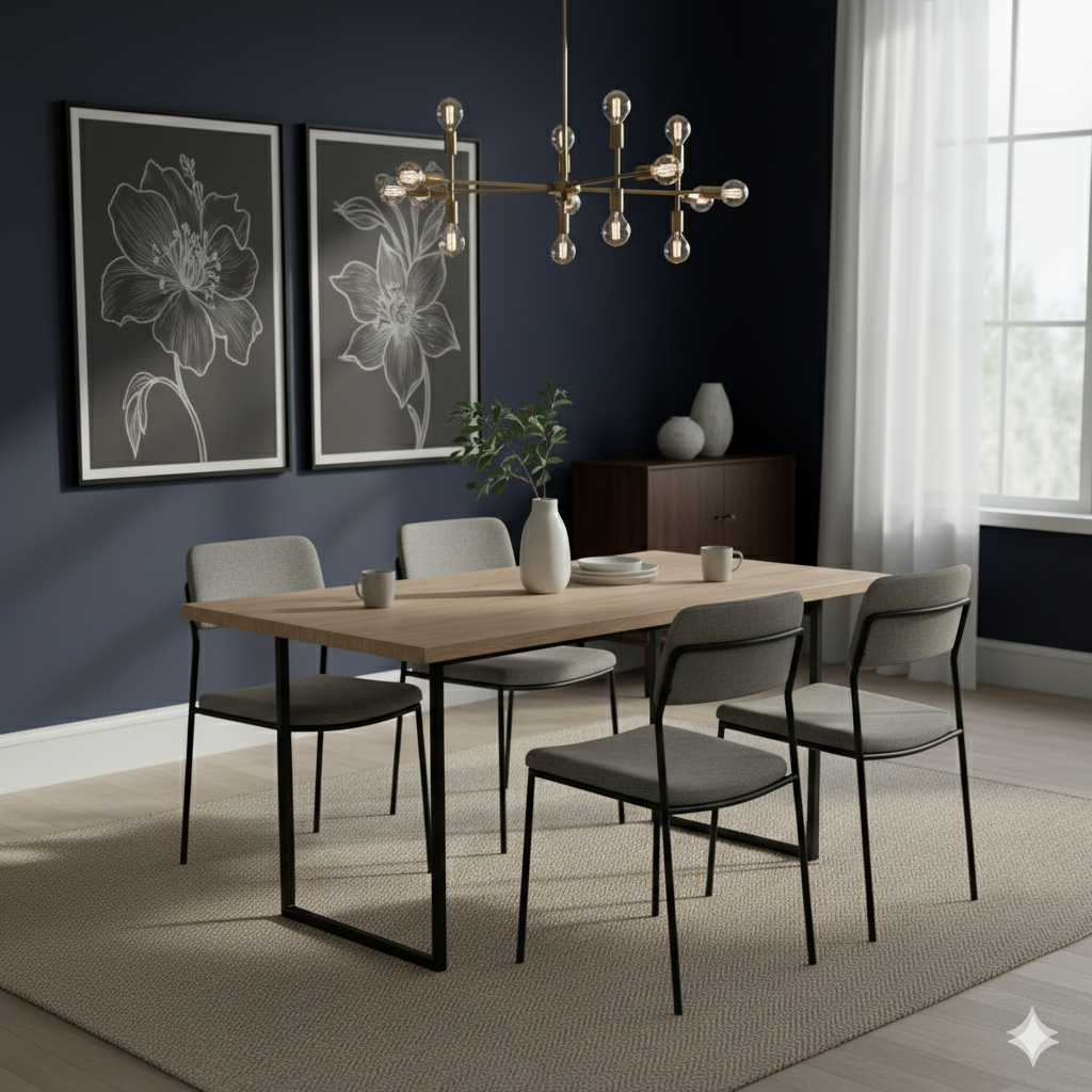 This modern dining table features a clean, light wood tabletop and a robust square tube metal frame, offering a sleek industrial-contemporary look that complements any kitchen or dining room. Its spacious rectangular design provides ample seating for four people, making it perfect for both daily family meals and hosting guests. The minimalist yet sturdy construction ensures long-lasting durability, providing a highly versatile surface for dining, working, or crafting.